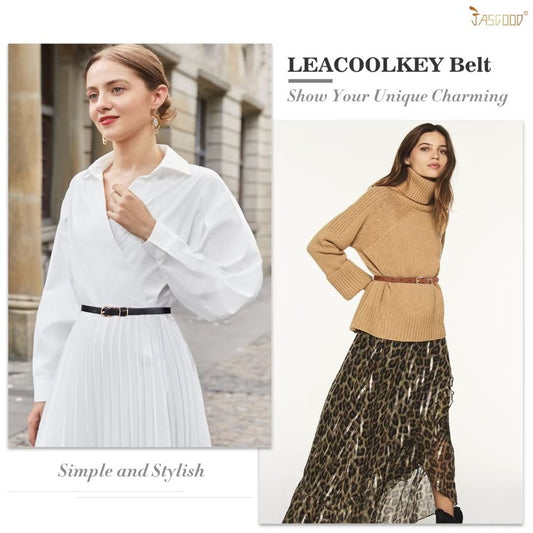 Women'S Skinny Leather Belt for Jeans Pants with Gold Alloy Buckle